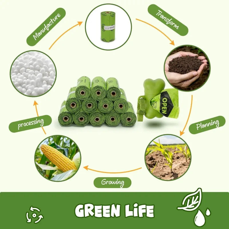 Dog Poop Bag Set with Dispenser & Leash Clip for Small/Medium/Large