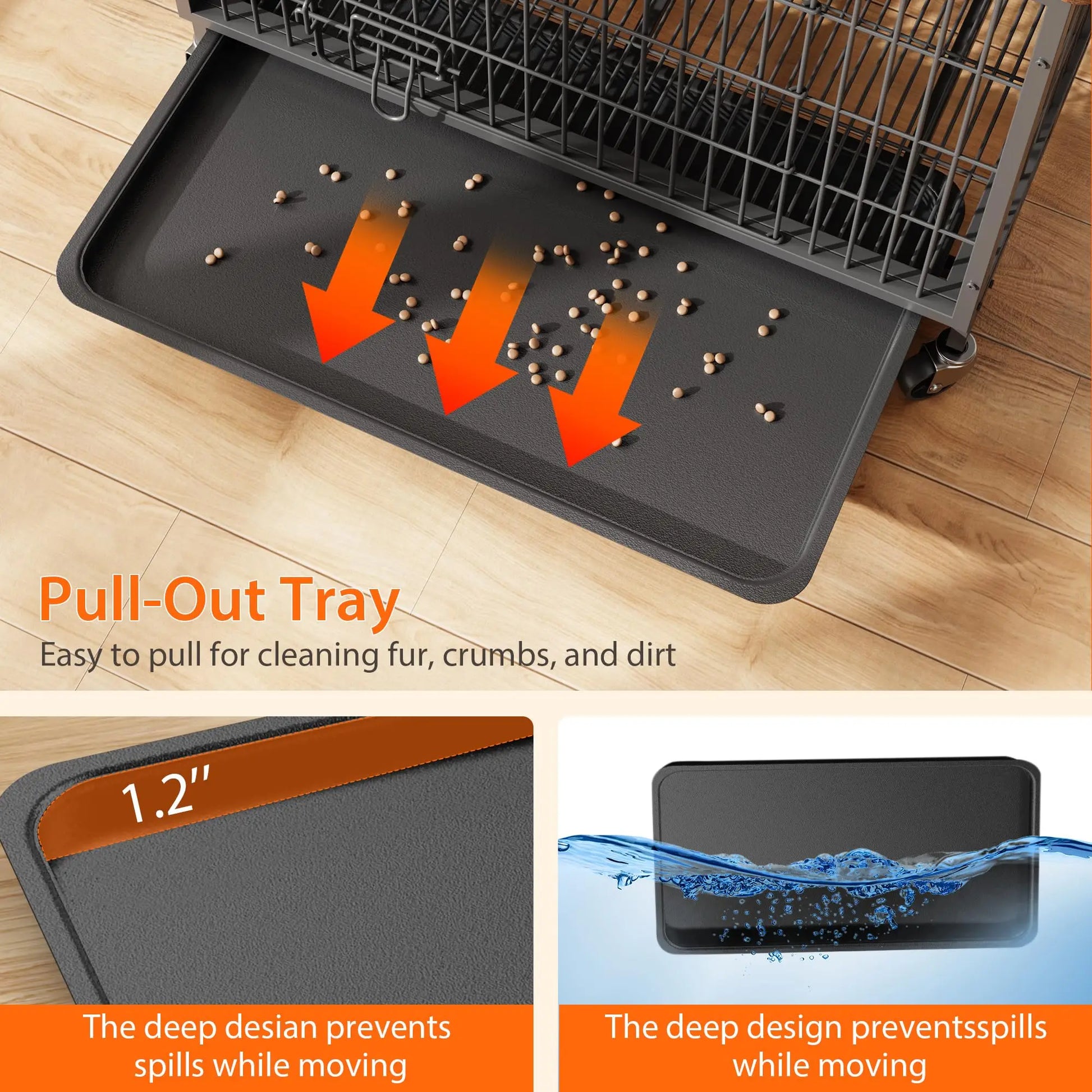 【Removable Tray & Easy to Clean】Keep your pet’s space clean with the slide-out removable tray and floor grate. The waterproof tray catches dirt, food, and accidents for hassle-free cleaning, while the raised grate keeps your dog elevated and dry—promoting health and hygiene every day.