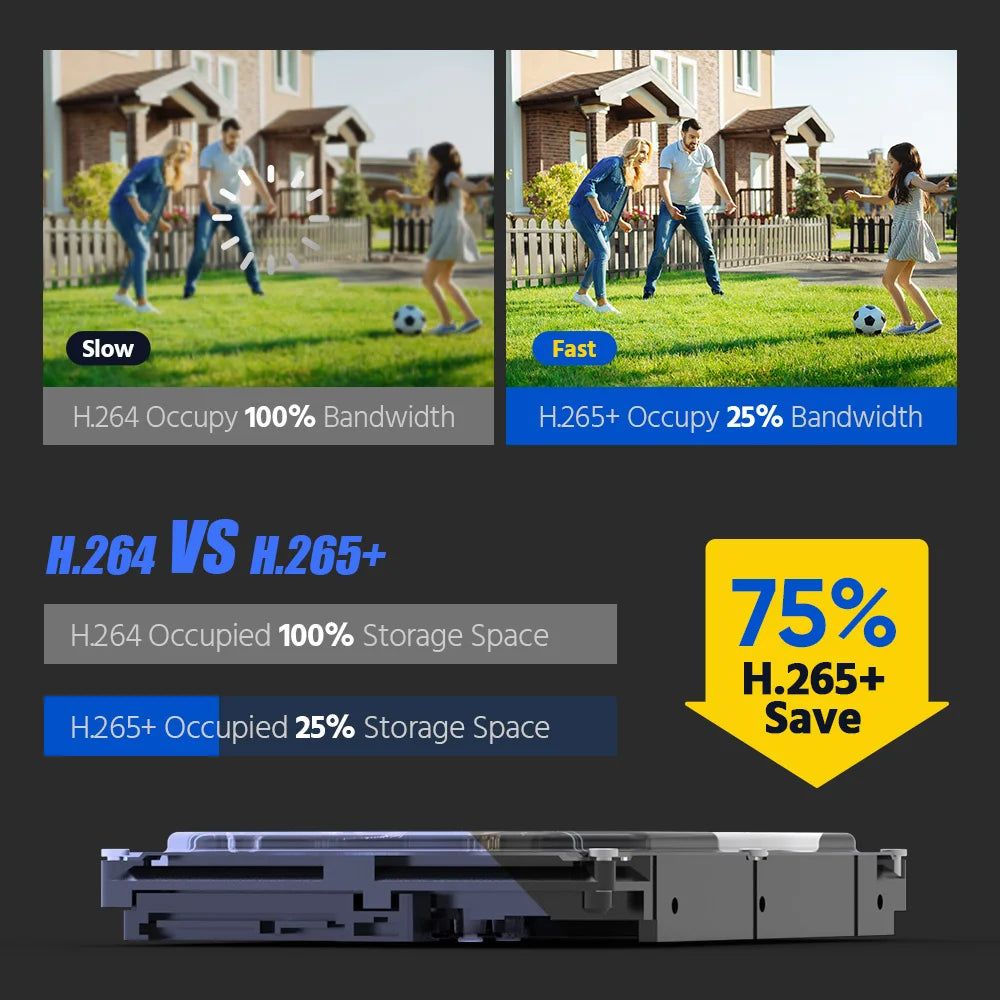★ Efficient H.265+ compression technology